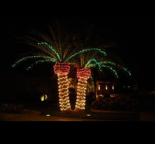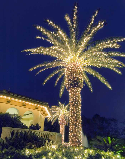 Holiday decorations are not limited to the indoors. Decorating your outdoor Palm Trees, Trees and shrubbery in subtle or colorful lights just adds to the holiday spirit.